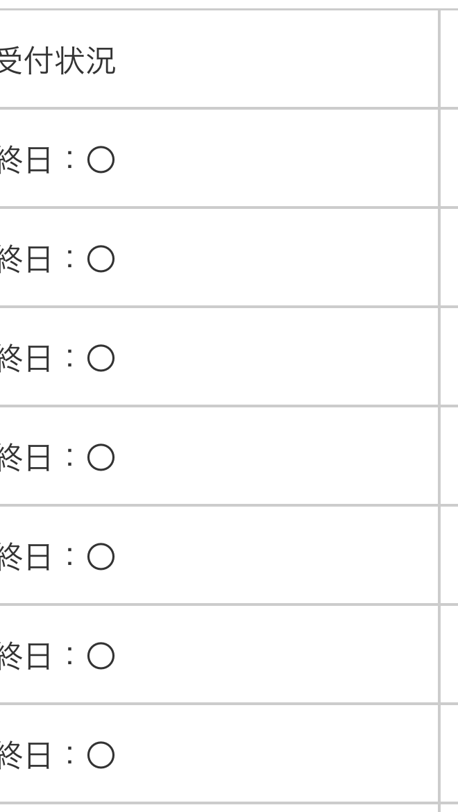 | 5月9日(土) | 終日:✕ | — |